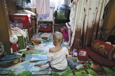 美美在家中独自玩,大多数时间因为担心感染,肿瘤儿童只是在家和医院度过童年。A14-A15版摄影/新京报记者 侯少卿