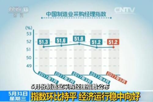 中国物流与采购联合会、国家统计局服务业调查中心今天(31日)公布,5月份中国制造业采购经理指数环比持平,已连续八个月保持在51%以上的景气区间,经济运行继续保持稳中向好。