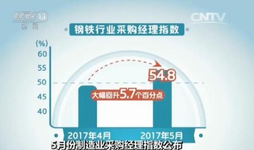 5月份钢铁行业采购经理指数为54.8%,较上月大幅回升5.7个百分点,重回50%的荣枯线上方,显示钢铁行业生产经营活动再次趋于扩张。