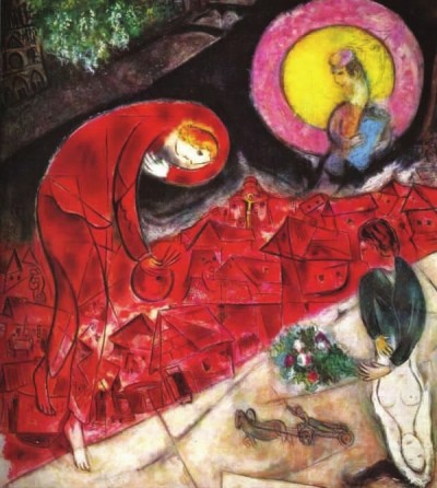 马克·夏加尔的 《红色的屋顶》 (局部)