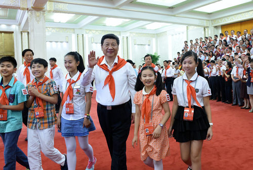 2015年6月1日,习近平在北京人民大会堂亲切会见中国少年先锋队第七次全国代表大会全体代表。新华社记者马占成摄