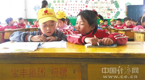 宁夏固原市原州区三营镇甘沟小学学生正在上语文课。(经济日报记者 张苇杭/摄)