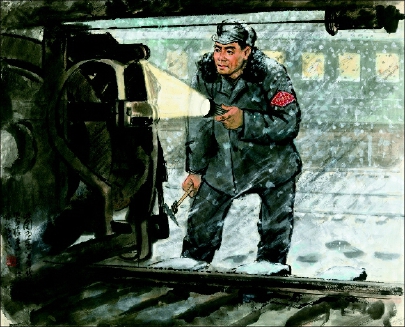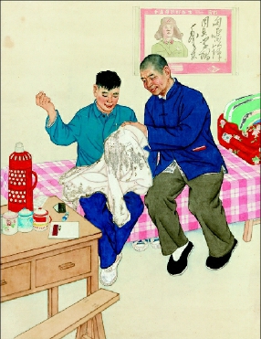 时传祥和他的徒弟(组画之一) 韦江凡 作