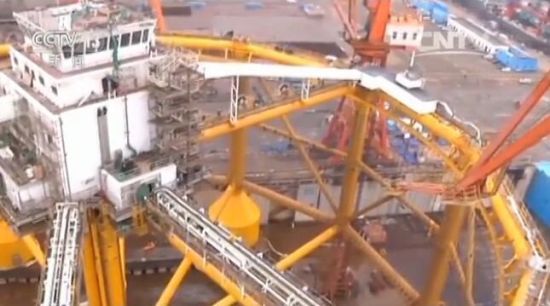 中船重工武船集团副总工程师 严?。菏导噬显逗@锩妫谜庵趾9な降耐芨词浇峁?,这还是第一个,高度很高。它有六七十米高,在建造过程中高精准的安装是很大一个难题,这个技术在目前是独一无二的。 在世界范围内这是唯一有这种需求的装备。