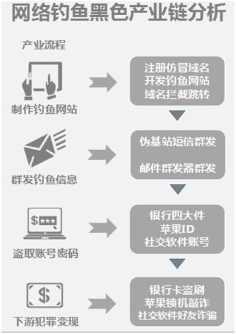 腾讯安全团队指出,网络钓鱼黑产链每个环节都分工细致,作案成本不高,但收益巨大: