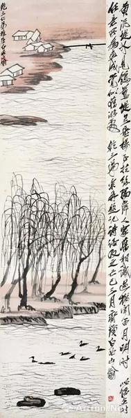 齐白石《堤岸鸬鹚》 设色纸本 镜心