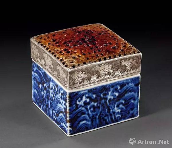 明永乐 青花江崖海水纹方盒 L7cm 成交价:172,500