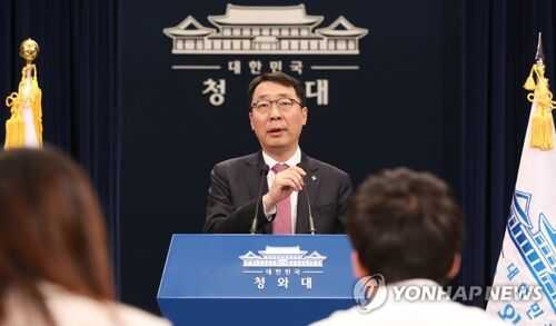 6月5日,韩国青瓦台国民沟通首席秘书尹永灿举行记者会