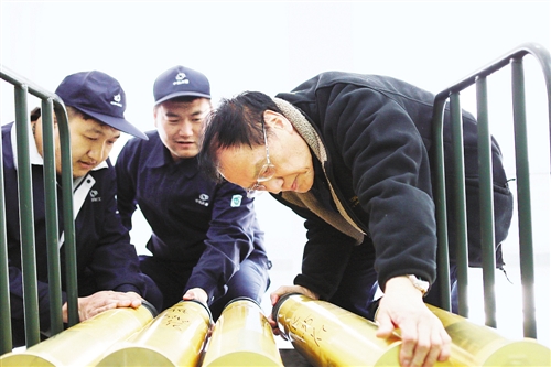 2017年3月10日,王泽山院士(右一)在辽阳试验场检查指导。 朱志飞摄