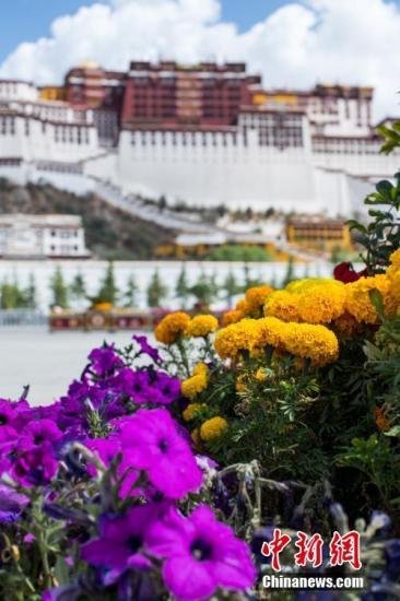资料图:布达拉宫广场盛开的万寿菊。中新社记者何蓬磊摄