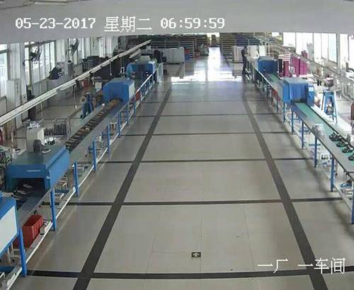 苏恒(黑色T恤带帽者)正在工厂内偷拍