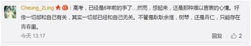 “高考,已经是6年前的事了......然而,想起来,还是那种难以言表的心情。好像一切都和自己有关,其实一切都已经和自己无关。不管是耿耿余谁,树琴,还是青仁,只能存在青春里。”