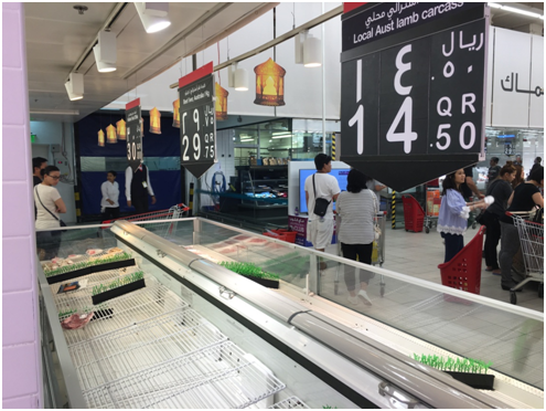 5日,卡塔尔当地超市牛羊肉被一抢而空。尘墨摄