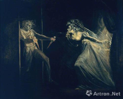 福塞利根据莎翁的作品画过很多作品,或许最著名的要算对《麦克白》的描绘。这幅画的气氛非常诡异,麦克白和麦克白夫人被表现得如同鬼魂一般。其中,刚刚将邓肯国王杀死的麦克白一脸惊恐,麦克白夫人则坚定而沉着。福塞利的作品总是给人一种幻想或者梦境的感觉,这种气氛的描绘使得他的作品和与莎翁有关的作品区分开来。