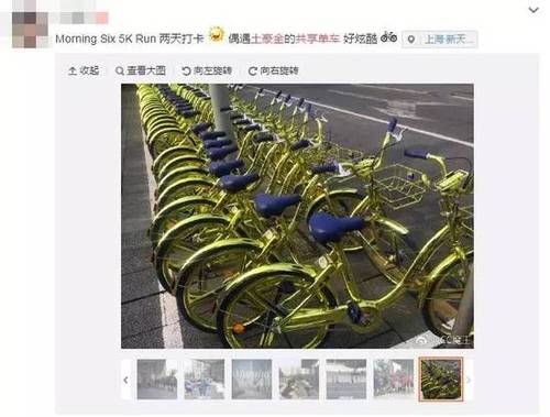杭州街头现土豪金共享单车 还可为手机充电(图)