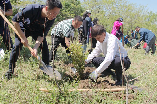 揭牌仪式结束之后,所有领导及党员又参加了植树造林活动,两千余棵树苗的成功栽培植造了绿色梦想,助建了大美吉林。
