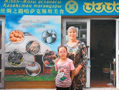 哈萨克斯坦人库来和女儿在中哈霍尔果斯国际边境合作中心。新华社记者张晓龙摄