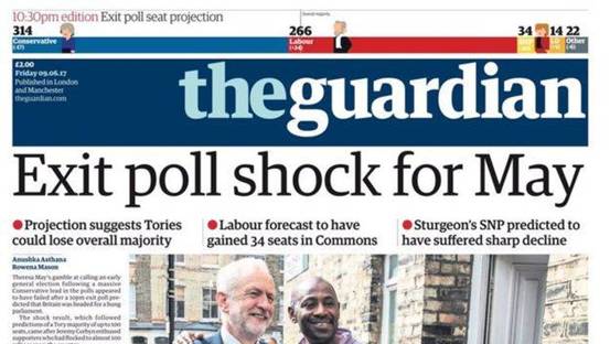 《卫报》:“特雷莎?梅的民调结果令人震惊”。