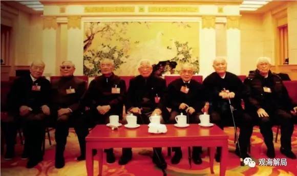 2012年11月参加中国共产党第十八次全国代表大会的原中国共产党中央顾问委员会委员。原国家审计署审计长于明涛(右一)、原中组部副部长李锐(右二)、原国家体改委党组书记安志文(右三)、原国家经委主任袁宝华(右四)、原成都军区政委万海峰上将(右五)、原南京军区司令员向守志上将(右六)、原中顾委秘书长李力安(右七)。