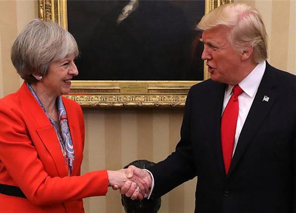 特雷莎?梅在2017年1月特朗普就职后7天向后者发送了国事访问邀请。但邀请引发英国政治家和社会各界的不满,在伦敦进行了数次反对特朗普政策的大规?;疃?。