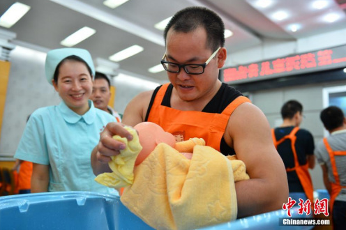 资料图:2015年9月13日,湖南省儿童医院开设的“超级奶爸”公益训练营开营?!±钇妗∩?/span>