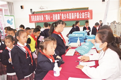 6月6日,在第22个全国“爱眼日”到来之际,民进昆明市委会、市政协教科文卫委员会、中华小学、昆明普瑞眼科医院共同主办“同心·送健康”爱眼护眼公益行动暨全国“爱眼日”爱心义诊进校园活动。此次公益活动,专业眼科医生携带检查仪器走进中华小学滇池星城校区,为500余名学生开展眼科义诊,建立眼健康档案;同时带领孩子们开展爱眼小医生职业体验活动,在充满趣味寓教于乐的活动中学习爱眼护眼知识,用活泼、易于接受的方式帮助少年儿童增强爱眼护眼意识和能力。