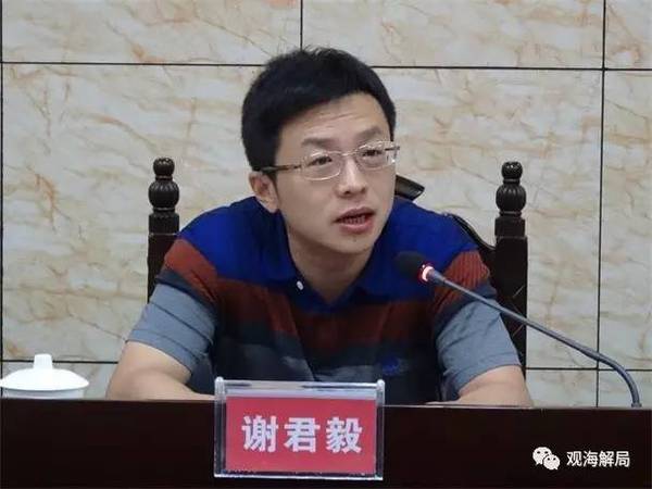 法晚·观海解局(微信ID:guanhaijieju)记者检索发现,谢君毅是湖南本地人,1980年10月出生于湘乡,土家族。2002年毕业于湘潭大学,同年考录为公务员,开始参加工作。这意味着,他至今已工作15年。