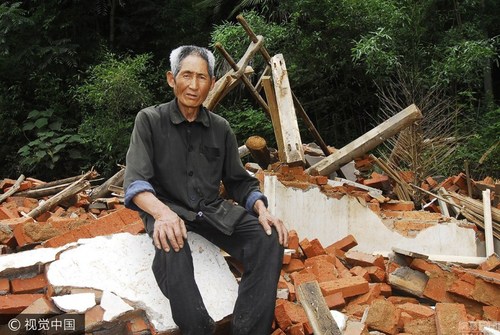 2017年6月9日夜晚,安徽省六安市,金寨县梅山镇龙湾村杨冲组73岁的独居孤寡老人叶照枝的房屋被当地修路的施工人员用铲车全部推倒。刘容海/视觉中国