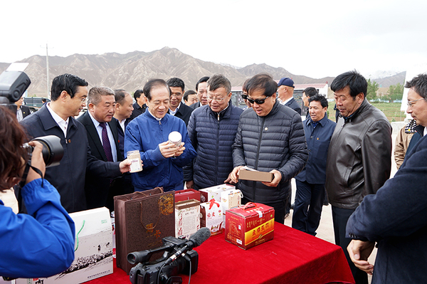 诺木洪是青海最大的柴达木枸杞生产基地,连片的枸杞地与遍地的沙棘林相映成景。在诺木洪枸杞产业园,韩启德详细了解枸杞品种、种植、施肥、摘果、收入等情况,提出要立足绿色有机,做好深加工,增加附加值。