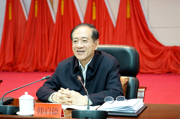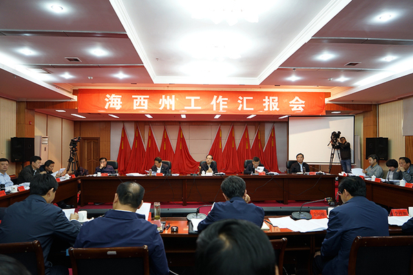 在调研座谈会上,韩启德听取了海西州书记文国栋、州长孟海的有关情况介绍。韩启德指出,青海是西部能源大省,柴达木盆地有着得天独厚的资源优势和重要的战略地位,蕴藏着丰富的盐湖、太阳能、风能、有色金属、天然气等资源,要找准方向和定位,科学有序开发风能、太阳能等资源,发展壮大能源优势产业,着力发展清洁能源基地,处理好能源开发和生态?;さ墓叵?,在?;ぶ蟹⒄梗岷嫌攀坪妥试?,探索在资源富集、生态脆弱地区的科学发展之路,推动柴达木绿色发展。