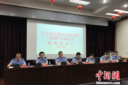 北京市公安局环食药旅总队与市食品药品稽查总队打击食品药品违法犯罪“净网”专项行动新闻发布会现场。 程春雨 摄
