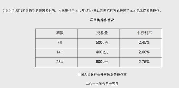 中新经纬客户端6月15日电 据中国人民银行网站15日消息,央行15日进行500亿7天、400亿14天及600亿28天逆回购操作,当日有600亿逆回购到期,净投放900亿元。央行7天、14天、28天期逆回购中标利率分别为2.45%、2.60%、2.75%,均与上次持平。就在今日凌晨,美联储宣布加息25个基点。