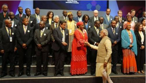 2017年5月23日,印度总理莫迪会见在印度举行的第52届非洲发展银行大会的代表。(来源:美国之音电台网站)