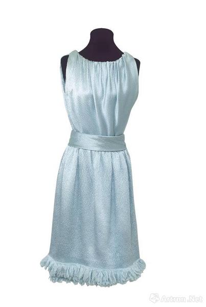 于 1966 年,她为电影《俪人行》接受时装杂志专访,并由威廉-克莱因(William Klein)为她拍摄造型照,当 时她穿着的纪梵希蓝色缎料礼服,也成为是次拍卖的瞩目焦点(估价:10,000-15,000 英镑,中下图)。这袭高贵 典雅的礼服缀以蓝色缎料流苏,简而不凡,彰显纪梵希与奥黛丽-赫本别树一帜的风格。