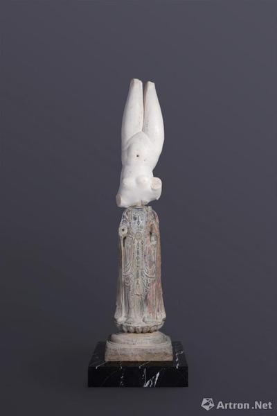 徐震-没顶公司出品,《永生 – 隋代菩萨立像,Marble statuette ofAphrodite Anadyomene》,2014,玻璃增强纤维混凝土、大理石颗粒、砂岩颗粒、钢、矿物颜料,300 x 80 cm。图片:致谢长征画廊