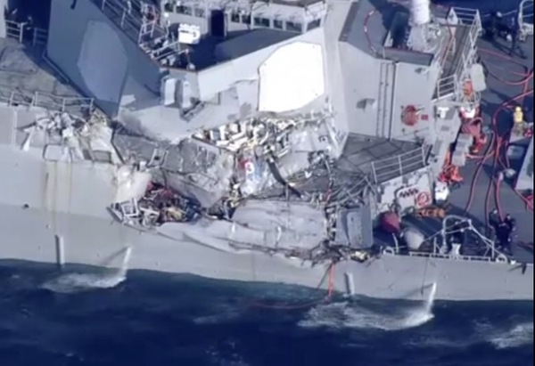 【环球网报道 记者 赵建东】据美媒6月17日报道,美国海军周五表示,美国海军“菲兹杰拉德”号导弹驱逐舰在日本附近海域与一艘商船相撞,出事地点在横须贺西南方向。