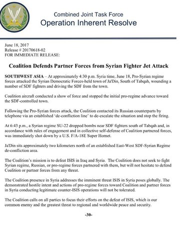 关键词:美军F-18战机 击落 叙利亚政府军苏22战斗轰炸机