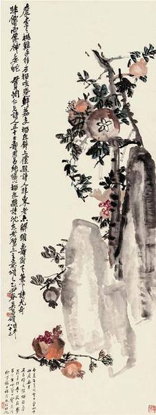 吴昌硕 石榴 135.7×51cm 1925年 中国美术馆藏