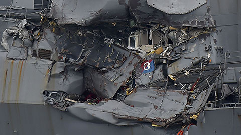 日本朝日电视台主持人说,从目前的信息来看,事发时,集装箱货轮在“宙斯盾”舰的后方行驶随后发生了冲撞。美军表示,在“宙斯盾”舰吃线的下方被撞出了一个大洞,包括容纳100多人生活的居住舱室等被水淹没,所有的遇难者遗体都是在进水的生活舱里被发现的。