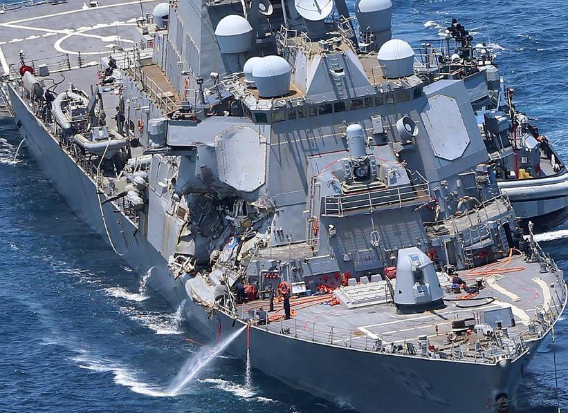 当地时间6月17日凌晨,美国海军第七舰队“菲茨杰拉德”号驱逐舰在日本近海与一艘菲律宾籍货船相撞。