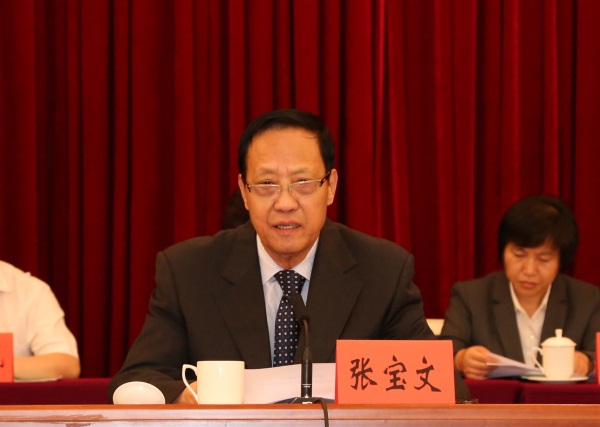 张宝文在讲话中充分肯定了民盟广东省委近五年的工作成绩。他指出,五年来,民盟广东省委在中共广东省委和民盟中央的领导下,在温思美主委的带领下,深入学习贯彻习近平总书记系列重要讲话精神和治国理政新理念、新思想、新战略,扎实推进自身建设;始终秉承“立盟为公、参政为民”的价值理念,紧紧围绕中共广东省委、省政府的中心工作及人民群众关心的热点难点问题,认真调查研究,切实履行参政党职能,各项工作取得了显著的成绩。广大盟员立足本职,建功立业,为盟组织赢得了荣誉。广东民盟的工作呈现出民主团结、开拓进取的新气象。他希望新一届民盟广东省委员会肩负起带领全省盟员在新时期新阶段开创广东民盟工作新局面的历史重任,进一步动员全省盟员继承和发扬民盟与中国共产党长期亲密合作的光荣传统,坚持和完善中国共产党领导的多党合作和政治协商制度,更加紧密地团结在以习近平同志为核心的中共中央周围,围绕中心、服务大局,不忘初心、继续前进,以实际行动迎接中共十九大和民盟十二大的胜利召开。
