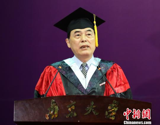 南京大学校长陈骏在毕业典礼上发言激励学子要吃得了苦,做得大事。 佘治骏 摄