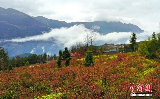 资料图:第11届榔坪木瓜花文化旅游节在湖北长阳土家族自治县榔坪镇马坪村木瓜园开幕,游客在雨中观景、赏花,感受木瓜枝头春意闹的景象。周星亮摄