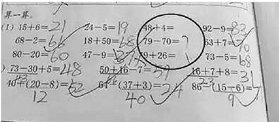 郑老师班上,一共有9个孩子漏做了这三道题。
