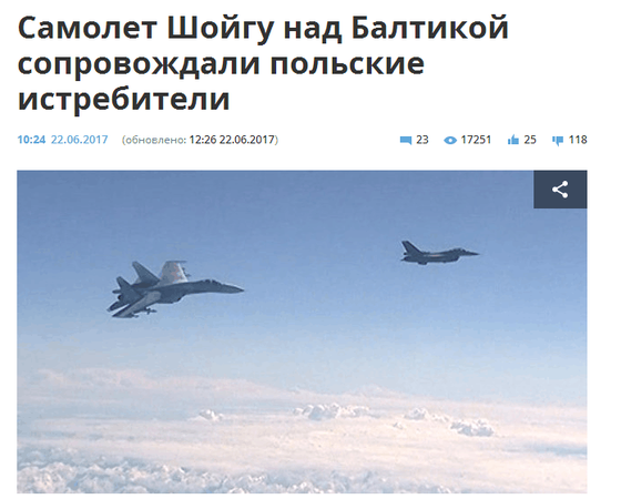 【环球网综合报道】21日,环球网记者曾报道过一则北约F-16歼击机试图在波罗的海公海上空接近俄罗斯防长绍伊古专机的消息。22日,该事件有了最新进展,俄罗斯卫星通讯社援引波兰RMF FM电台消息称,当天跟随俄防长专机的为波兰战斗机。