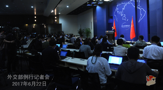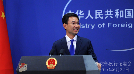 在朝鲜半岛核问题上,我可以再重申一下,中方一直在为解决半岛核问题进行不懈努力,始终发挥着积极和建设性作用。在此轮半岛局势紧张升级后,中方积极劝和促谈,相继提出了“双轨并行”思路、“双暂?!背橐约啊八忧俊苯ㄒ椤V蟹降恼庑┧悸?、倡议、建议已经得到了越来越多国家的理解和支持。
