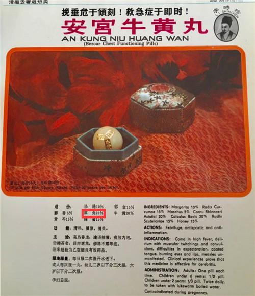 但如今生产的安宫?;仆韬凸サ闹幸┯泻艽蟛煌>葜幸┦詹刈医樯?,安宫牛黄丸原来有一味重要药材——犀牛角,因1993年全球禁止对犀牛角的贸易和使用,犀牛角断了来源,我国开始用水牛角浓缩粉替代,但其成分、功效和天然犀牛角有很大差距。