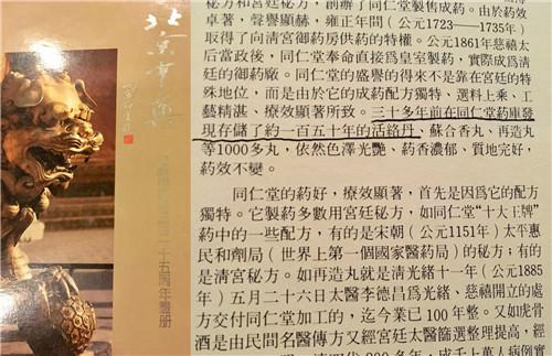 现在仅存的80年代以前同仁堂的:安宫?;仆?、山王清心丸、?;魄逍耐?、大活络丹等救命老药,被挖掘出来一丸难求,数万、数十万一丸地刷新老药的纪录,但这些偶然被珍存的宝贝级老药,虽具救命奇效,但终究会被用??!