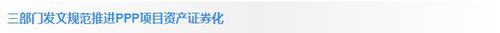财政部、中国人民银行、证监会近日联合发布通知,决定规范推进政府和社会资本合作项目资产证券化。通知要求,鼓励项目公司开展资产证券化优化融资安排。在项目运营阶段,项目公司作为发起人(原始权益人),可以按照使用者付费、政府付费、可行性缺口补助等不同类型,以能够给项目带来现金流的收益权、合同债权作为基础资产,发行资产证券化产品。