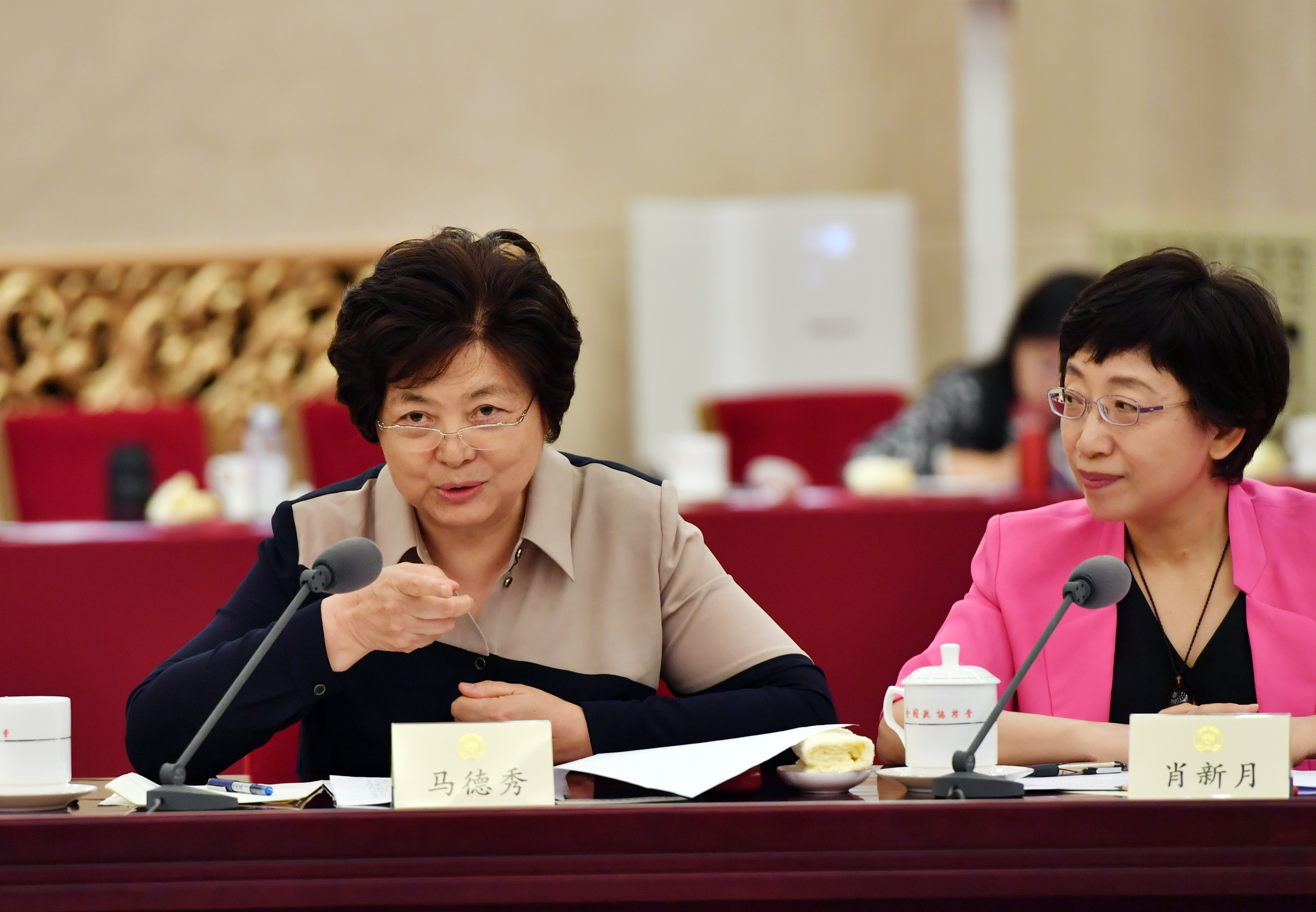 马德秀委员(左)在会上发言 人民政协网 记者 姜贵东 摄